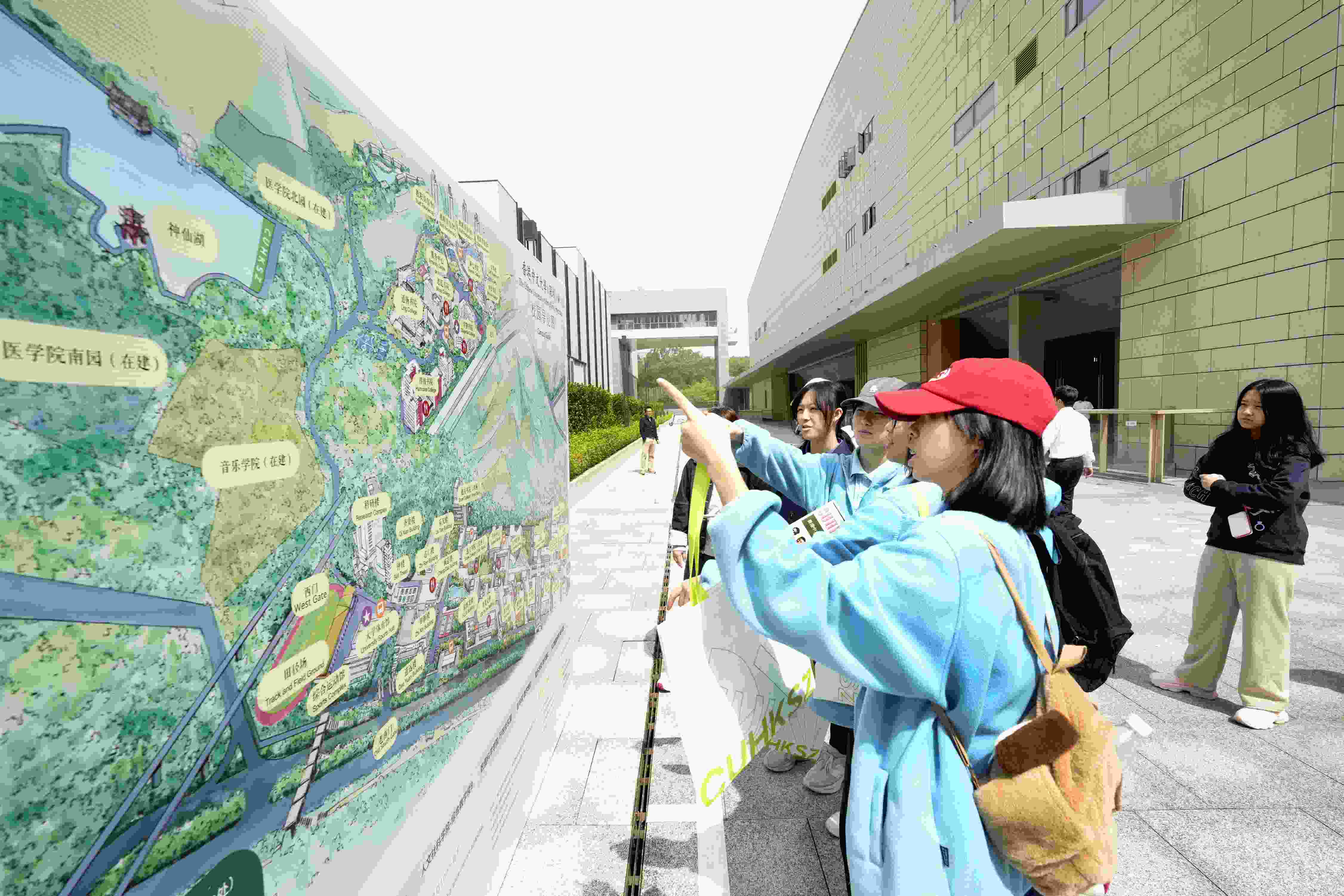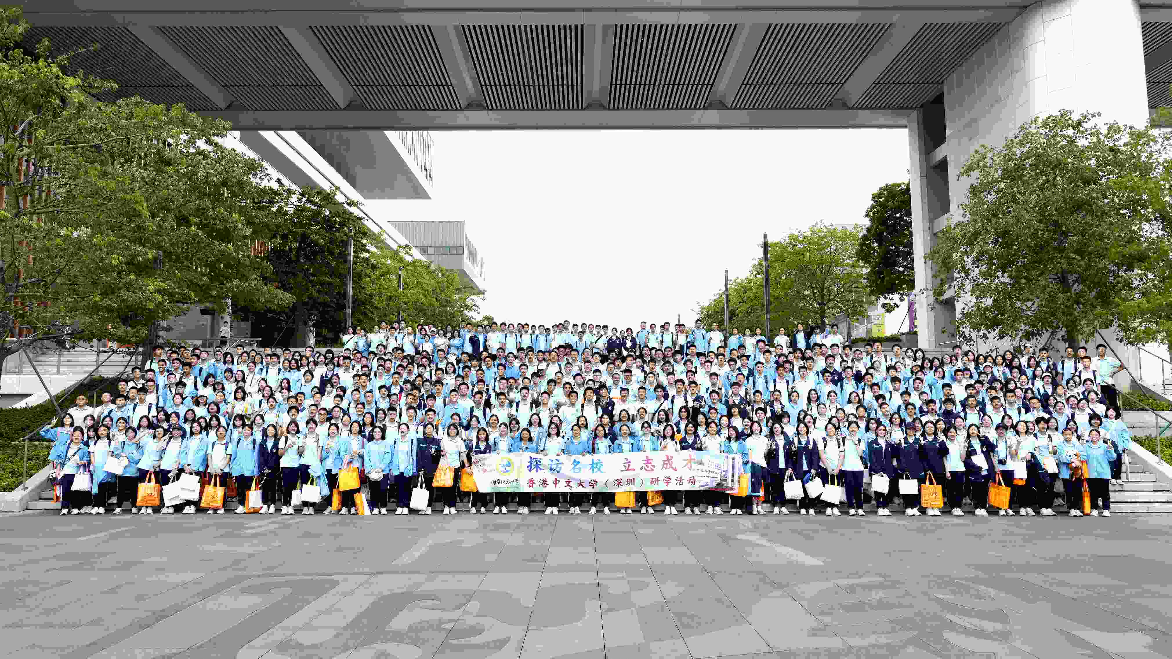 2025年4月13日,国华学子们踏入了香港中文大学(深圳)的翡翠色草甸,感受学术气息,探索多元专业。现代化楼宇如巨帆破云,与天空交响成诗,浓郁的学术气息如春风拂面,裹挟着南国特有的紫荆暗香。